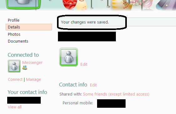 You will get a confirmation message from Hotmail telling you that your changes were saved.