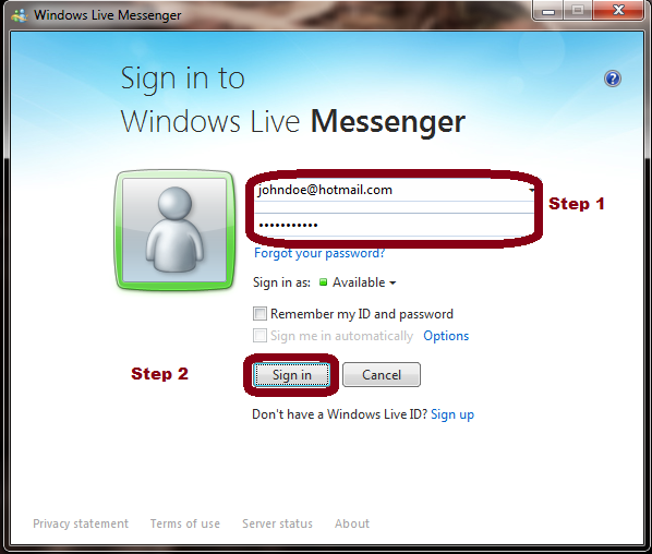 First, open your Windows Hotmail Messenger and furnish it with your log in details. After that, just click the “Sign In” button below the text fields to log in to your messenger.
