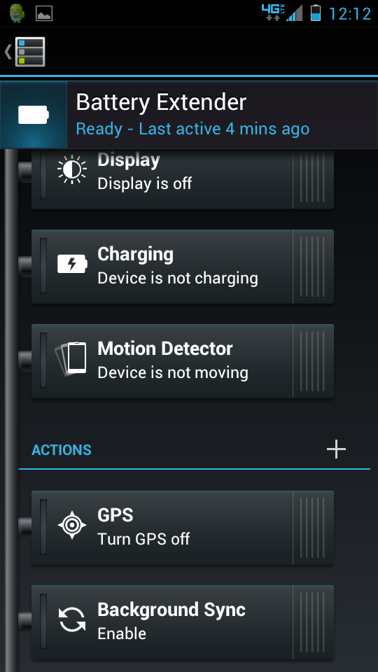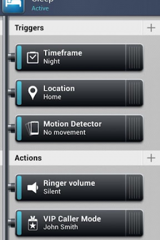 By tapping the view button, a dialogue box will appear that will ask you to choose from triggers or actions. The application may turn off battery consuming applications such as GPS etc. or lessen the brightness options if it has been increased in order to enhance battery.