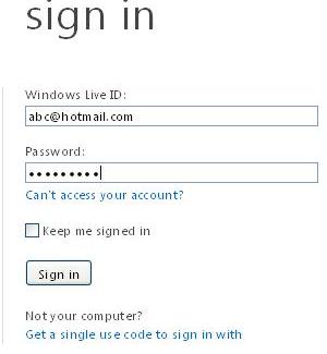 Enter your user name and password to sign in to your Hotmail account.