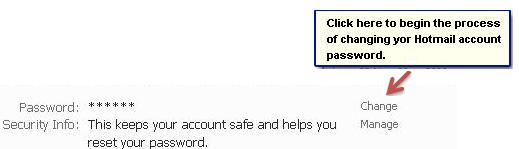Click "Change," located right in front of your Hotmail account "Password." You will find “Change” option right under the "Account Security” section of the account summary page.
