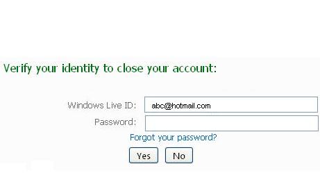 Re-enter your Hotmail Email Password into the "Password" box given at the end of the page and click “Yes.” Your Hotmail Email Account is closed.
