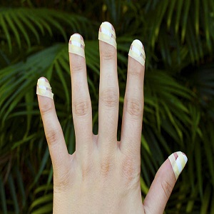 Gently pull of the stripes and you have your candy nail design. Apply a top coat of clear nail polish to preserve the design. The clear coat also gives the design longer life and makes it look refined. Use a cotton bud dipped in the nail polish remover to clear up work and give a neat look to the design. Additionally you can add more thin stripes of red colour using the thin brush. Dip the brush in the nail colour and use it to make diagonal stripes on the nails.