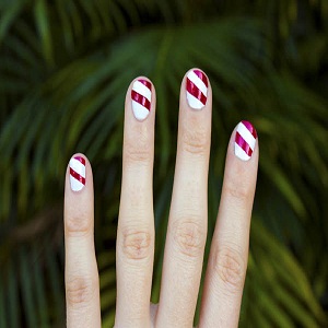 Want to do something special and unique with your nails? How about a fancy nail design that is going to earn you envious looks from those around you. The candy cane is a famous, trendy yet so easy to make nail design that never fails to leave an impact. It couples up the cute and glamorous appeals and leaves with nails to be proud of. The most basic colours are white and red but you can try others and experiment to get the perfect look you are after. The best thing about it is that it is very easy and simple to make and does not ask for much technique. All you have to do is to get the materials ready and we will teach you how to master the art of candy cane nail design with our step by step guide in the easiest of ways. Do not complain when friends and family make you do their nails after you showcase the art. Let us get started with something interesting and fun.