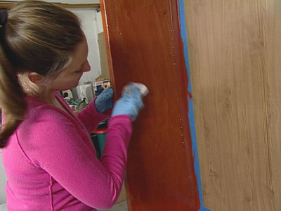 Take a tape roll and paste it around the inside corner of the back panel, which joints the side panels of your bookcase. It will allow you to avoid applying the stain on the back panel. Take a 2" paintbrush and use it to apply the red stain on the side panels of the bookcase. Always try to make strokes, parallel to the structural lines of the wood. You should then wait for at least 10 minutes, before you wipe off any excess stain applied on the side panels. Make sure the stain is smooth and does not give an untidy look.
