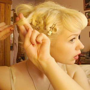 These sweep from the face and are pinned on the top. For side reverse rolls: roll a strand of hair into a circle and pin it down. The hair should be curled in sections with a curling iron. Using hair mousse will create a suppler look. With the help of a round brush, part your hair to the side. Put them in a pony so they dint disturb in making the rest of the hair style. Create volume in your hair by holding them tightly and using a comb to tease them. Make sections of your hair and tease each section so the hair is not flat. Now make victory rolls; starting from the back, make the roll and steadily move forward to imitate the old look. Use bobby pins and some spray to keep the look in its place. This step should not be forgotten as it ensures that the curls d not open up. Make the same v-curls on the other side. Spray your head thoroughly with hair spray. To make it appear neat, use a round brush on the ends. Apply hair cream to give it some shine.