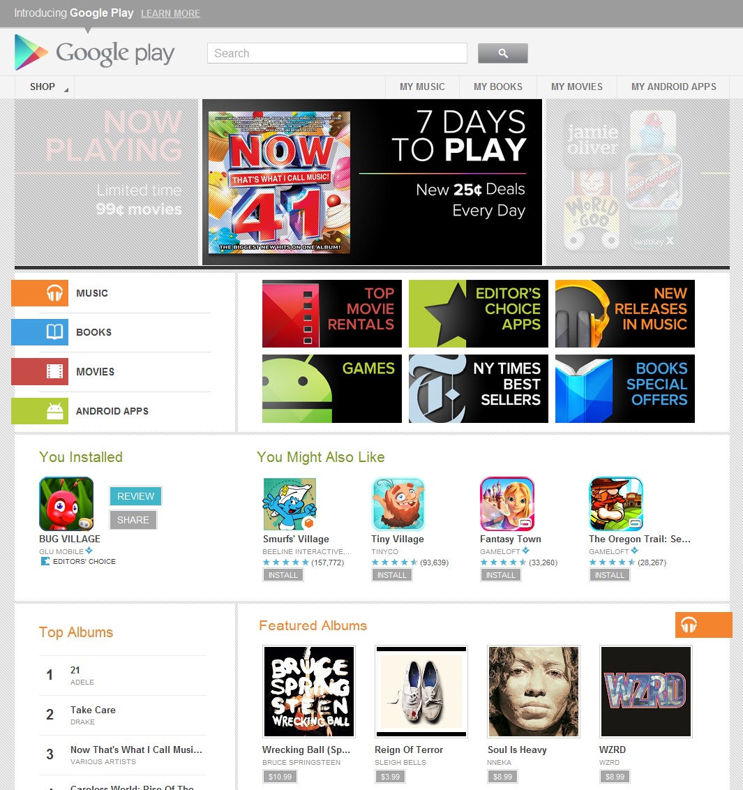 First of all go through all the Applications on your device and locate the Android market. Its logo has a white shopping bag with a green tinge at the centre. Google play will be the title below the logo.