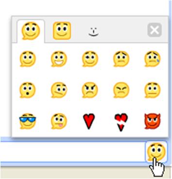 Now click on the emoticon icon at the bottom of the opened chat window and select any of your favorite emoticons in order to have that smiley appear in your chat window. You can also type a message to go along with your emoticon.