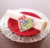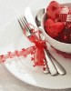 Place two clean  plates on both sides of the table and set one foil-wrapped heart candy on each plate. Tie the napkins with ribbons and place them on sides of the plates.