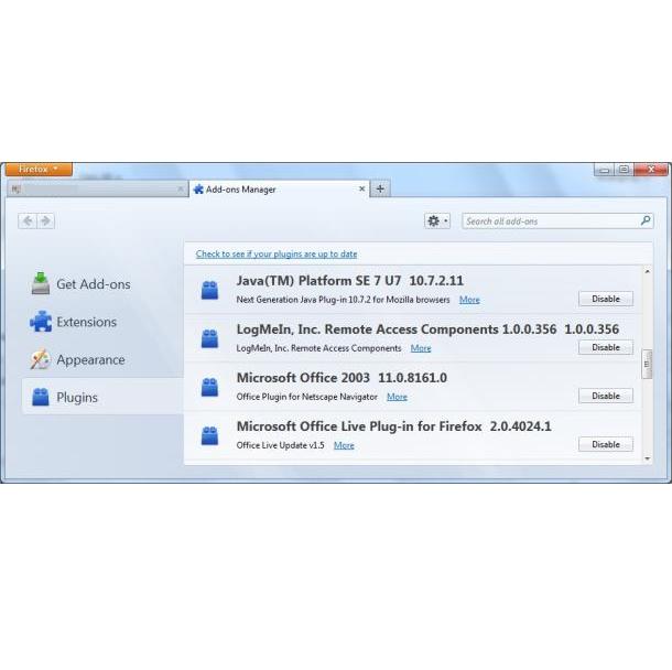 To disable Java plug-in Firefox, open Firefox click the tool button and select the Add-ons a new window will open for the add-on manager. In case if you are unable to see the Firefox menu then press Alt key to open menu. Select the Plug-ins from the left panel, move to the Java plug-in and hit the Disable button.