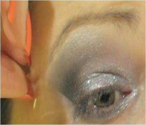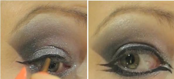 Now, take a little bit of black eye shadow and put it on outer corner of your eyes. Apply two to three layers of black eye shadow to make it darker.