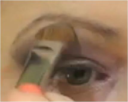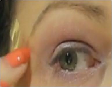 Pick up a slightly shimmering eye shadow and place it above the cream colour eye shadow beneath your eyebrows.