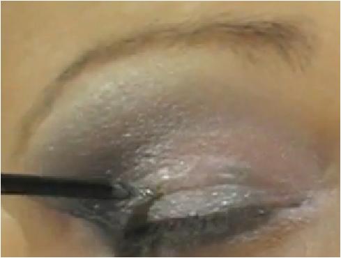Grab silver, light blue or light purple glittery eyeliner and apply some of it just over your upper eyelid. Also, apply some of it on your lower lid.