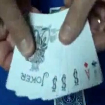 Now you pick the other pack that you made with 4 Jokers and 2 Aces. Showing that you are pulling Joker from the pack to the audience, you end up pulling out an Ace and you put it over the Ace at the top.
