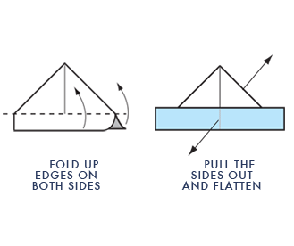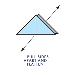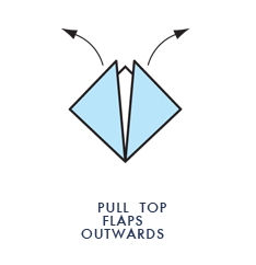 Upon folding the triangle will again form a square shape with two closed and two open sides. At the point where the two sides of closed surface are joining, open the square moving both sides opposite from each other.