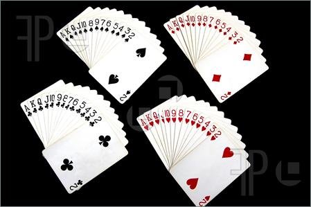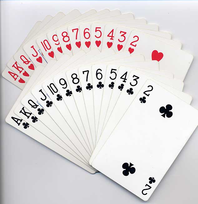Arrange the deck by placing cards in four piles, such that you start with Spades, followed by Hearts and Diamonds in last.