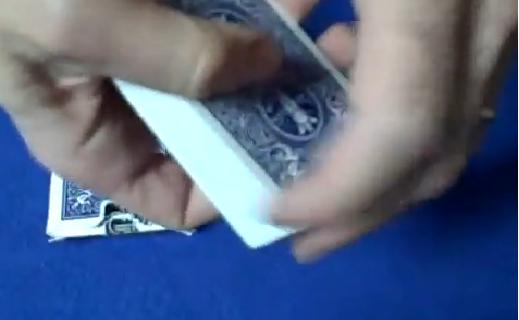 Applying your mind reading skills, ask the spectator to cut the above prepared deck, taking the top card off the left pile, while the right half of the deck is placed under the left half.