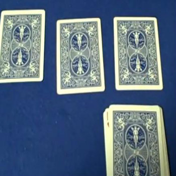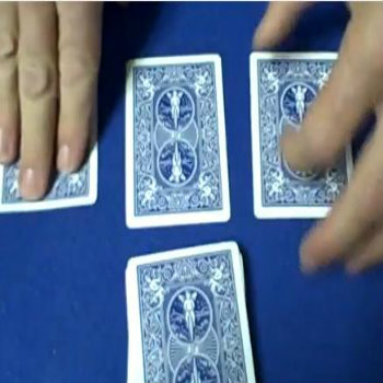 Finally pick up the deck and in three intervals place the face up cards on one side and face down cards on the other. As you flip over the top cards on three piles, they will match those already placed on the table.