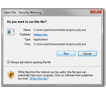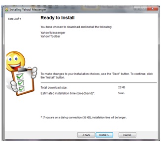 Click Run and the installation will start. After accepting the terms and conditions agreement the next window will get confirmation to install Yahoo Messenger.