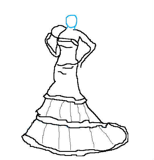 After you have drawn both the sides keeping a certain width in between, mention the layers or the frills that you want to appear in the dress.