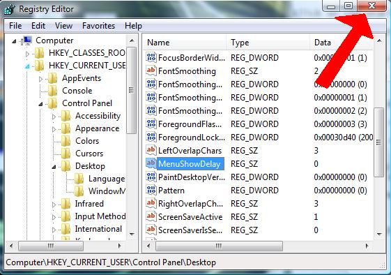 Press Alt+F4 to close the registry editor or simply click the ‘X’ button. You may have to reboot your computer for the changes you made to take effect.
