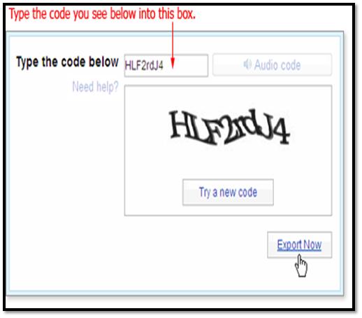 Once you enter the code, simply click the “Export Now” link, given at the bottom of the page.