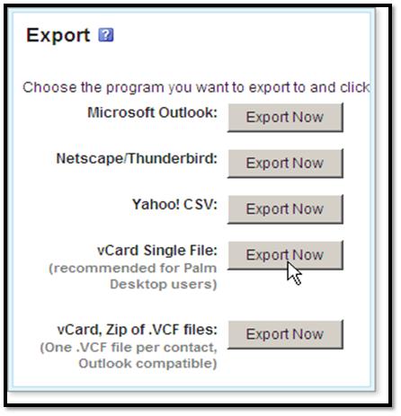 Click the “"Export Now" link, right in from of the "Yahoo! CSV."