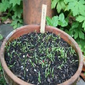 Using a small rod make holes in the soil for the seeds. Drop a seed in each hole and then cover up with the soil. Do not be too picky if you drop extra seeds in to a hole. You can always thin them up later.