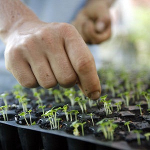Use a pencil to make seed furrows in places you want to grow. Drop in seeds in them. After this fill up the holes with the seeding mix and press in a bit.