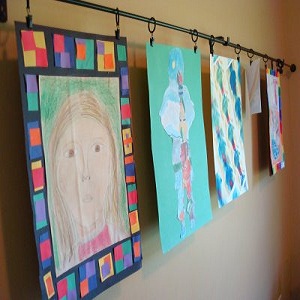 Another option viable for arts and craft sessions is to install a clothesline and then use it to hang a number of pictures. It is a viable option for kids exhibitions at school and art classes. The clothesline can remain permanent while you can easily change the pictures.