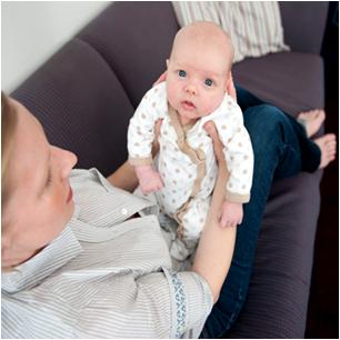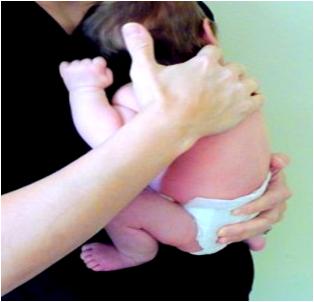 Hold your newborn with his/her back against your chest, grabbing his/her chest with one of your hands fixed in his/her armpits. Use the free hand to support him/her in-between legs to the waist. It is perfect position to spend some memorable time with your new family member, playing and cuddling with him /her.