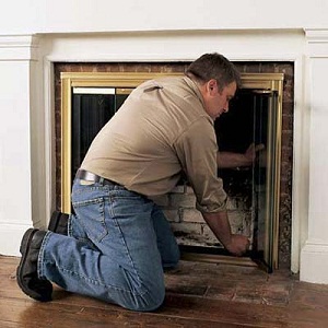 Put the door against the fireplace opening, this time to install it permanently. The door should flush against the exterior of the fireplace. Reach inside the door and screw the brackets into the lead anchors. This will secure the bottom of the door to the fireplace floor.