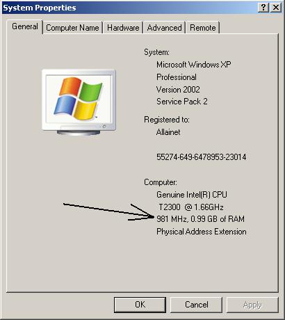Turn on the laptop and find the size of the installed RAM on your computer. Click on start on the bottom left corner of the screen, then right click on 'My Computer and select properties. It will display the size of the installed RAM in a popup menu.