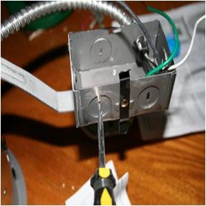 Now put in the wiring clam into the hole you just opened up and twist on the retainer nut until tight.