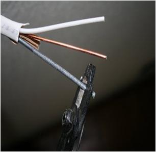 Drag cable from the power source to the first recessed light and use a wire-stripper to remove the plastic insulation from the ends of the black and white wires.