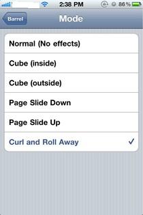 To change the 3D effects of your springboard. Go to "Settings" of your iPhone , scroll down and tap on "Barrel". Now you will see many options, you can chose any effect. and your home screen icons will scroll with that effect.