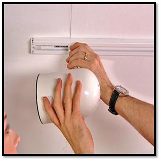 Use the provided template to locate the exact position to mount the screws on the wall or ceiling and mark with a lead pencil. Bore a medium hole for mounting the toggle bolts in the wall or ceiling, using an electrical hand drill machine.