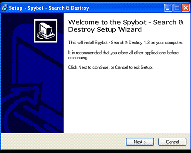 When downloading completes, run the setup of Spybot Search and Destroy to install the software. A wizard will guide you through the installation process. If you are not a computer expert, just keep clicking ‘Next’ whenever prompted.