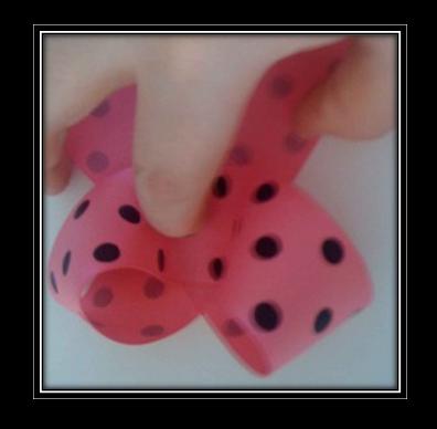 Hold the top portion of the ribbon and gently circle it just like you are making an awareness ribbon which is used as a symbol of a variety of global concerns depending on its patterns and colors.
