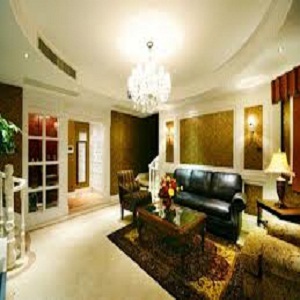 Warm and dark colors give the cave in effect which makes the ceiling look lower than reality. Paint the ceiling and walls in a shade of red or a combination of the color. However the ceiling should be of a shade darker than the walls. It is also observed that patterned ceilings feel warmer and nearer than clear ones. Wood paneling in the room and wooden floors also give an intimate feeling to the interiors.