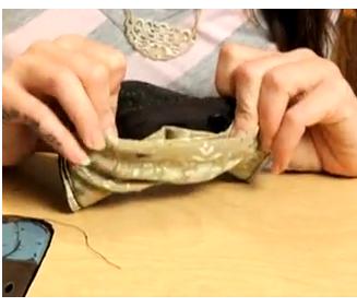 Turn the purse with its inner-right-side out and then smear some glue to the innerside of the purse’s frame.