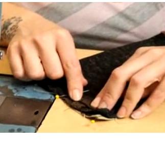 Next, join the side seams of the purse with sewing pins. Now, sew these side seams of the coin purse with each other.
