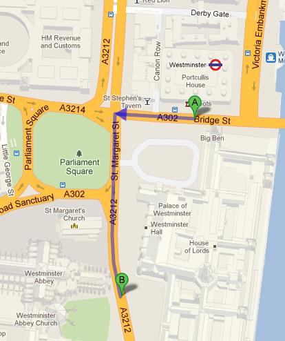 From the Westminster tube station, move west on Bridge St/A302 towards Canon Row and then turn left onto Parliament Square/St. Margaret St/A302/A3212. Keep following A3212 and you will soon realize that The Westminster Palace is on your left side. View Map