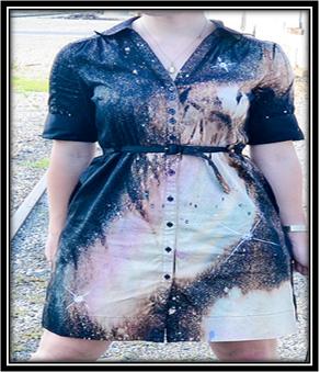 Move on and make a bleach pool right in the middle of the galaxy print on your dress in order to create a lighter shade in the center and fade darker as your galaxy print goes out.