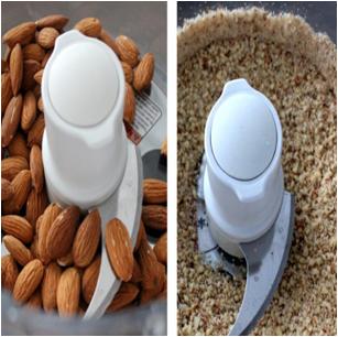 Place 1/4 cup of almonds in a food processor and grind them up for few seconds until finely powdered. Now shift the ground almond into a large bowl.
