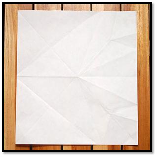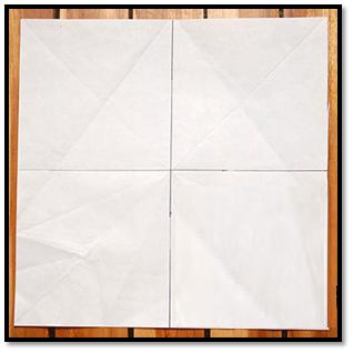 Using your index finger, bring the four edges to the center of the squared paper and hold them together. Make sure that all of the four edges of the paper are overlapping so that none of them escape.