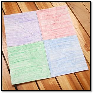 Now color in the squares, using a separate color for each. You can use pencil colors, markers, paints or crayons to color the squares. You can cut various pictures from newspapers or magazines and paste them in the squares, using glue. Moreover, you can paste some colorful or glitter stickers in the squares.