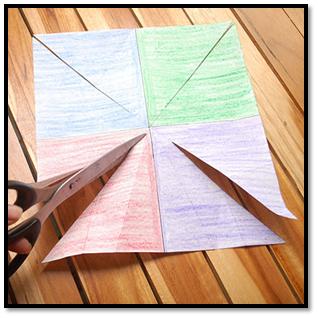 Cut along the diagonal lines, using a sharp pair of scissors. Make sure not to cut further than the lines your have traced.