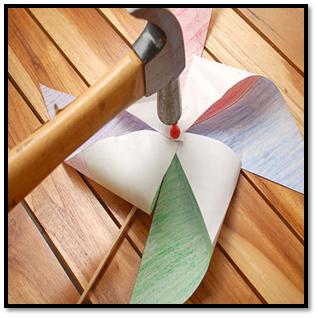 Now use a small hammer to drive the pin into the stick securely. However, make sure that the pin is loose enough to permit the pinwheel to turn properly while exploring the wind.