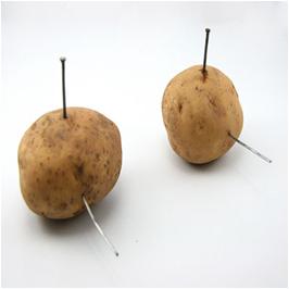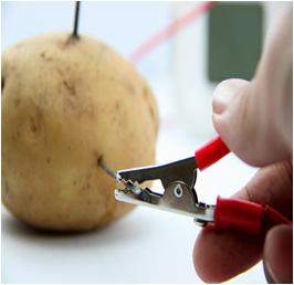 Tuck two medium pieces of copper wires into the two potatoes and place these two potatoes at a suitable distance.